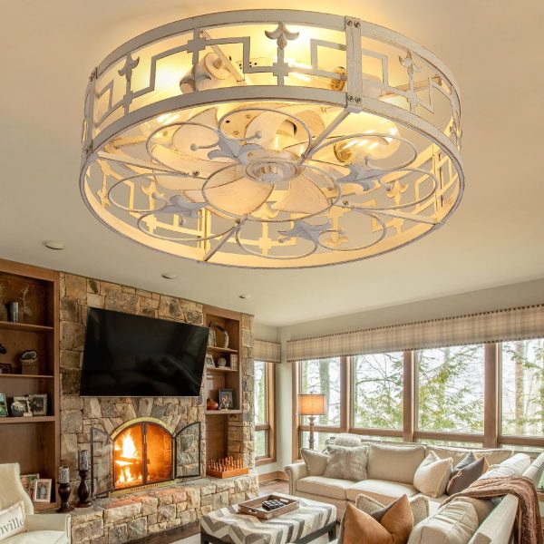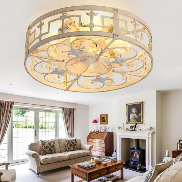 Rustic Fleur-de-lis Caged Ceiling Fan Light Blending French elegance with rustic charm, this ceiling fan features a vintage Fleur-de-lis design, distressed metal frame, and antique-style blades. The fan requires simple assembly of the main body and decorative cage during installationperfect for farmhouse-style bedrooms, kitchens, and dining rooms