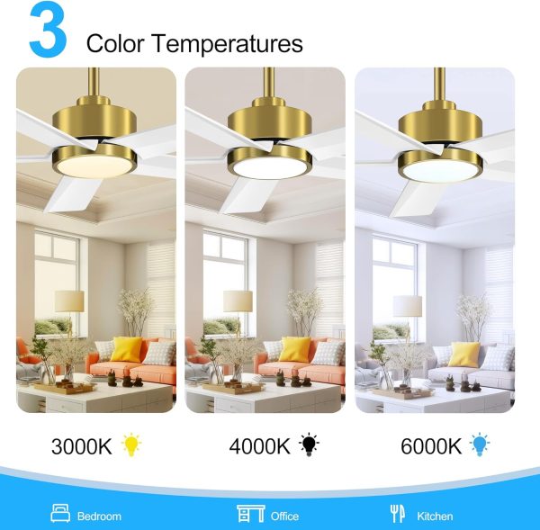 Multi-Function & Remote Control Our 52 inch ceiling fan comes with remote control. Turn the light/fan on/off, choose from 3 color temperature options3000K warm yellow light/4000K natural light/6000K cool white light), and you can adjust adjust 6 wind speeds, change the wind direction, and even set a timer1/2/4H). Ceiling fans and lights can work simultaneously or independently.