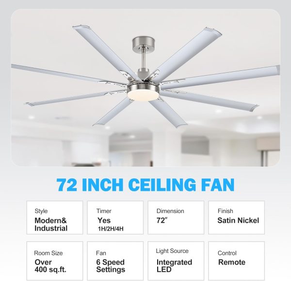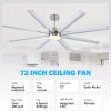 Ceiling Fans with Lights Remote, 72 In Silvery Industrial Ceiling Fans with 8 Blades 6 Speeds Noiseless Reversible DC Motor, Outdoor/Indoor Ceiling Fan for Farmhouse, Bedroom, Living Room, Patios