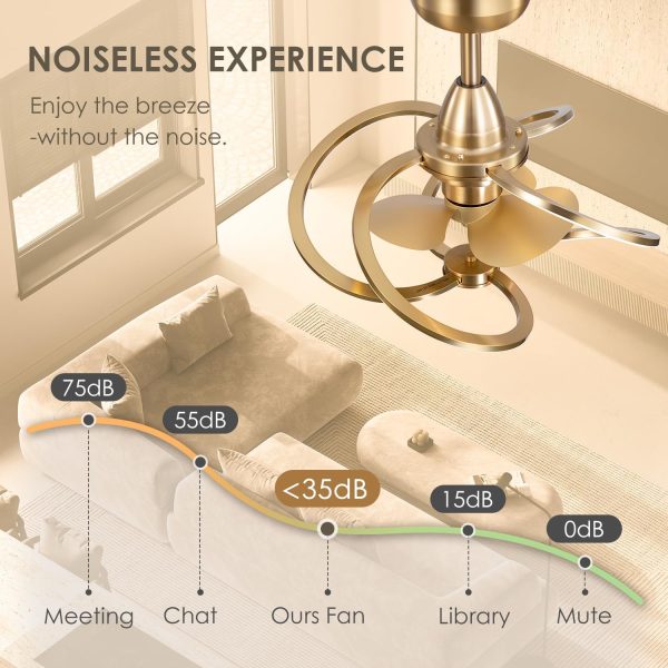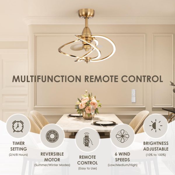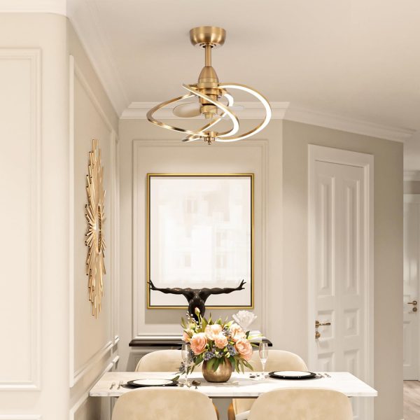 Elegant Gold Ceiling Fan with LED Light This 20" gold fandelier brings sculptural elegance and soft ambient light to your space. With its modern ring design and warm gold finish, it creates a cozy, stylish atmosphere that transforms any bedroom, living room, or dining area. More than a fanit's a design statement that enhances both form and function in your home