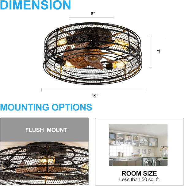 Product Dimensions: Measure of this bedroom kitchen flush mount ceiling fans indoor with lights is 19 x 19 x 7 Inch