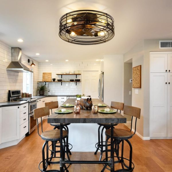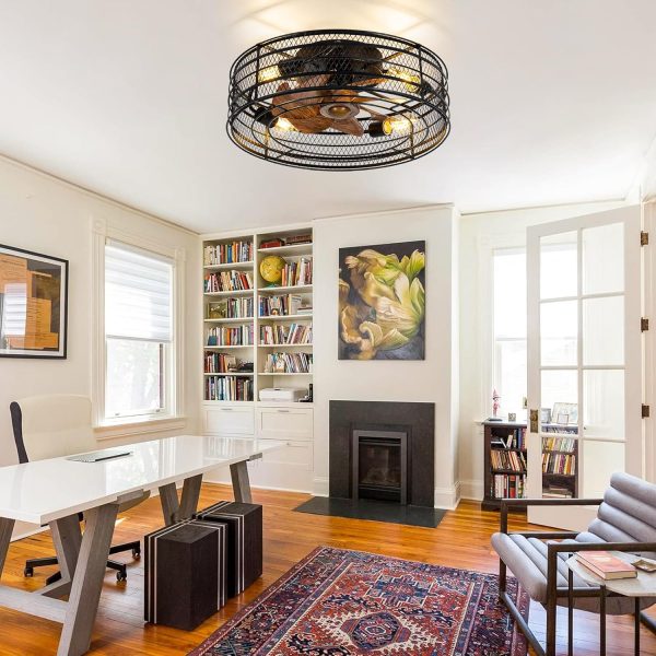 Widely Applications: This 19 inch black caged ceiling fan with light chandelier is enough for small/medium rooms up to 75-175 sq.ft. fit well such as outdoor patio, garage, farmhouse, indoor living room, dinning room, bedroom, office, shop, studio, bar etc.