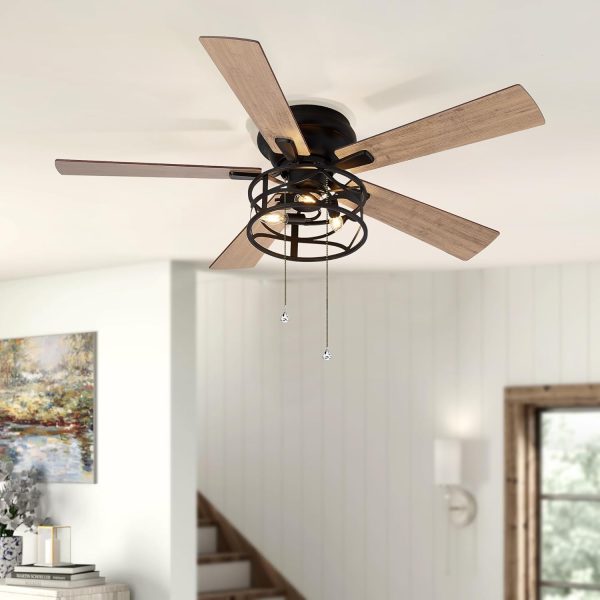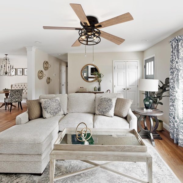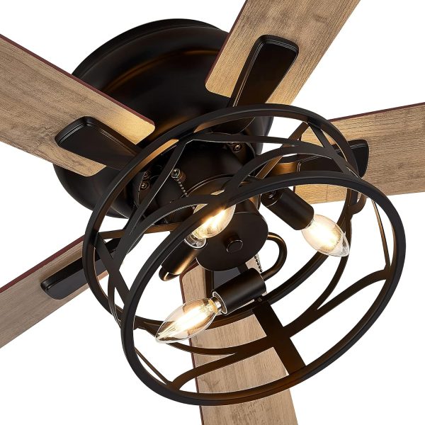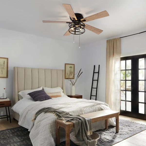 Dual Finish Blades: This bedroom caged lighting ceiling fans finished with dark wood grain and light wood grain color blade, the plywood blades have smooth and delicate surface, add modern design to your space. Pick the color that best fits your space.
