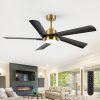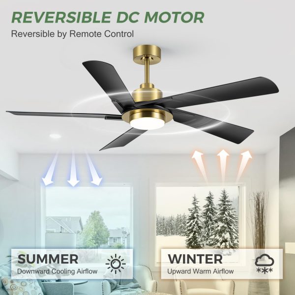 60 Inch Ceiling Fan with LED Light & Remote, Industrial Ceiling Fan with Reversible DC Motor Flush Mount Fan, Reversible 5 Blades Dual Downrods Timer for Large Bedroom, Living Room (Black & Gold)