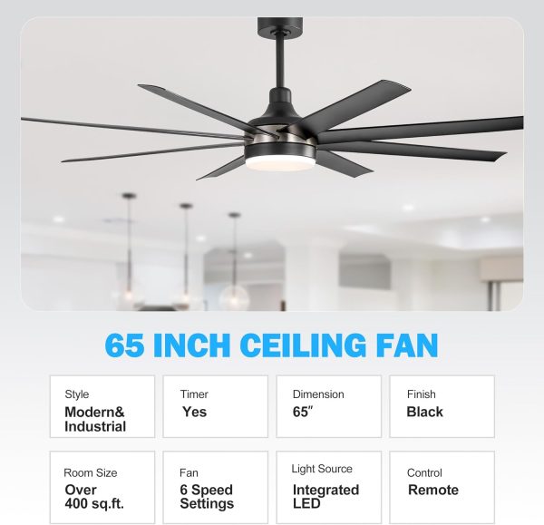 Widely Applications: This 65 inch bedroom ceiling fan with led lights is extra large and enough for large rooms up to 600 sq., wonderfully fit for outdoor patio, garage, farmhouse, indoor living room, dinning room, bedroom, office, shop, studio, bar etc. It is designed to meet the demands of larger space.