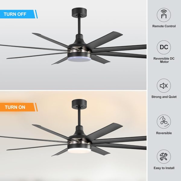8 Reversible Blades & Quiet DC Motor: With super silent DC motor, this 65 inch industrial ceiling fan with led light runs smoothly with no noise and deliver strong airflow. 8 reversible blades provide downward wind to keep your room cool in summer, while in winter, you can change it to upward to enhance the airflow and keep your room warm.
