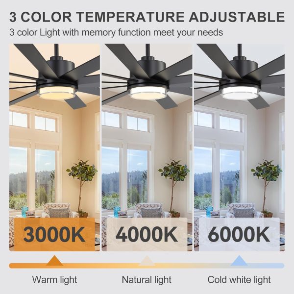 • Large Indoor Ceiling Fans Remote Control With the remote controller included, you can set the the fan speed of this 60-inch farmhouse large ceiling fans easily to a cozy mode. 6 wind speed gears for choice. 3 color temperature(3000K, 4000K, 5700K), 1Hour, 4Hour, 8Hour timer function, reverse function.
