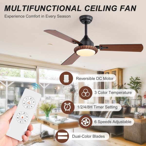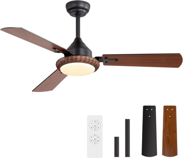 Dual-Sided 48-Inch Ceiling Fan This 48-inch fan features reversible bladesbrown on one side and black on the otherto match your decor. The elegant motor design and rustic accents blend modern style with natural elements, making it perfect for living rooms, bedrooms, kitchens, or any space that needs both style and functionality